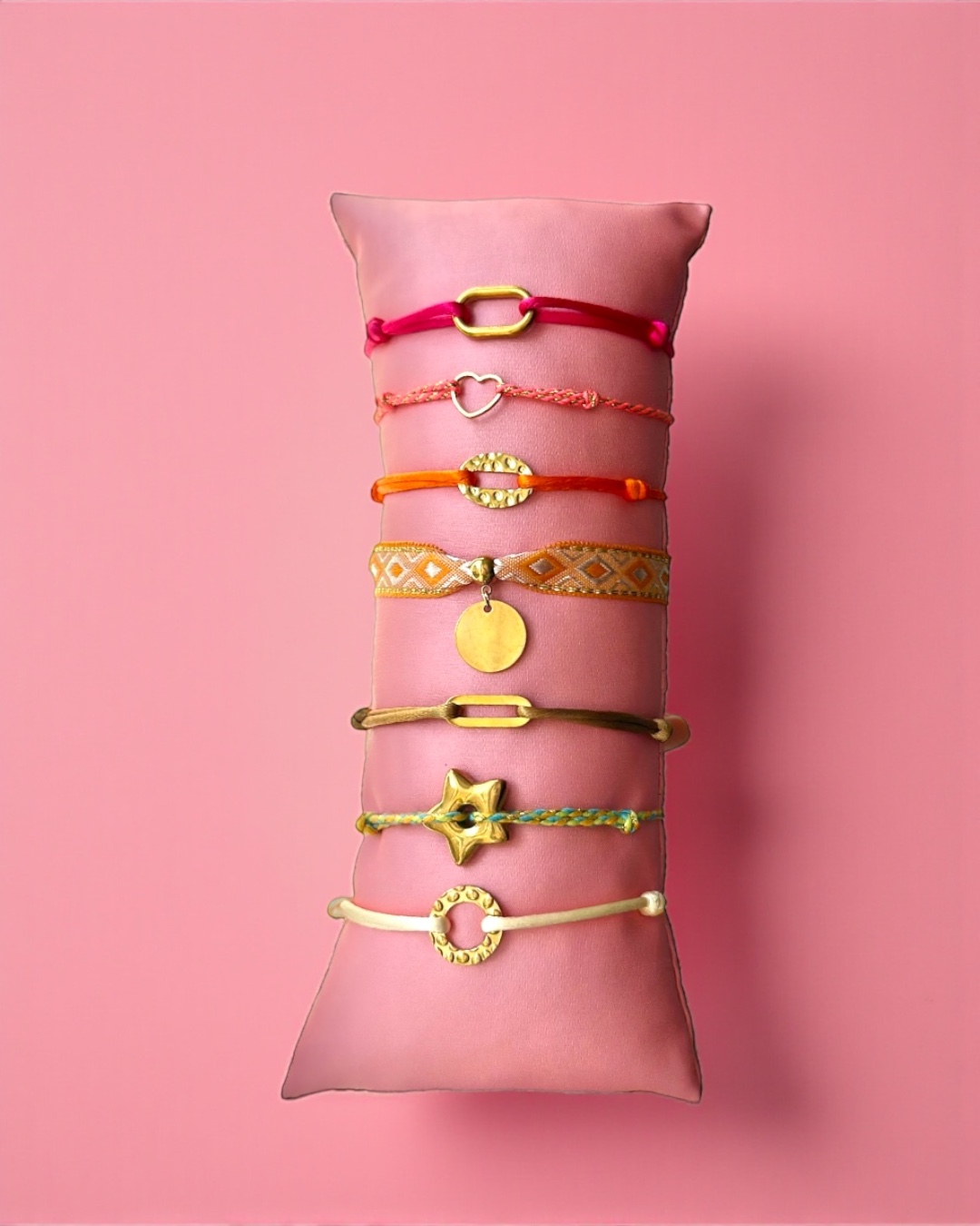 Vous y trouverez des bracelets en cordon de différentes collections (bohemia, ibiza, cordon), une bague, une paire de boucle d'oreille, un code promo et un collier.